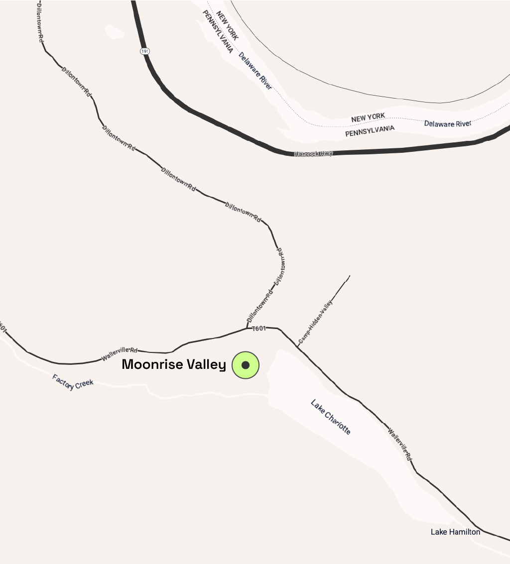 Moonrise Valley is accessible by car and located just under 2.5 hours from New York City and Philadelphia, making it a convenient drive for those coming from the city or surrounding states. Parking is available on-site for a nominal fee, and we encourage carpooling to minimize environmental impact and enhance your festival experience. For GPS directions, use the following address: Moonrise Valley, 906 Wallerville Rd, Lake Como, PA 18437